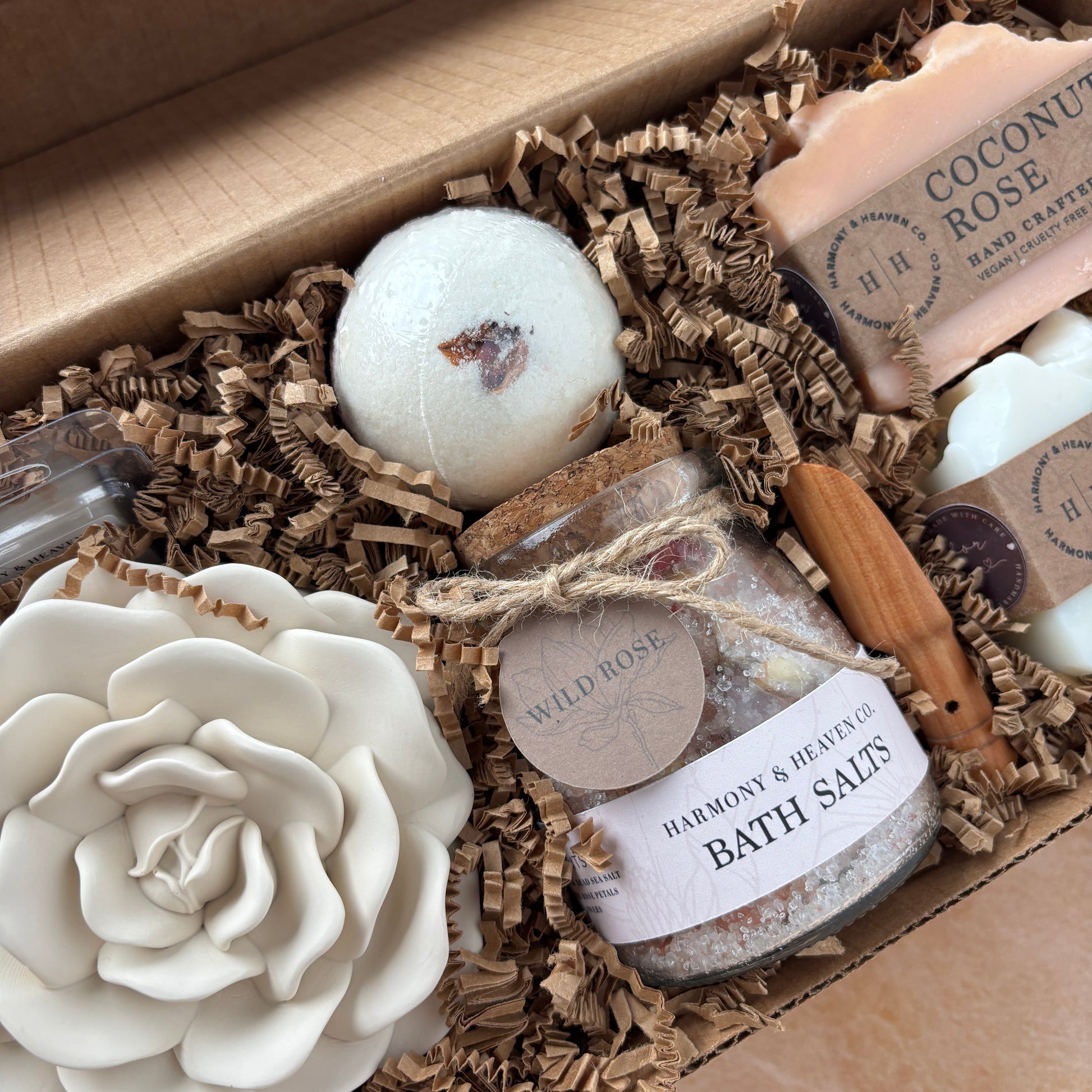 Create the Experience: Light the Cocoa Cashmere candle, draw a bath with Wild Rose salts and Coconut Rose bath bomb, cleanse with our Signature Soaps, then continue the ambiance with our Blush Blossom wax melts